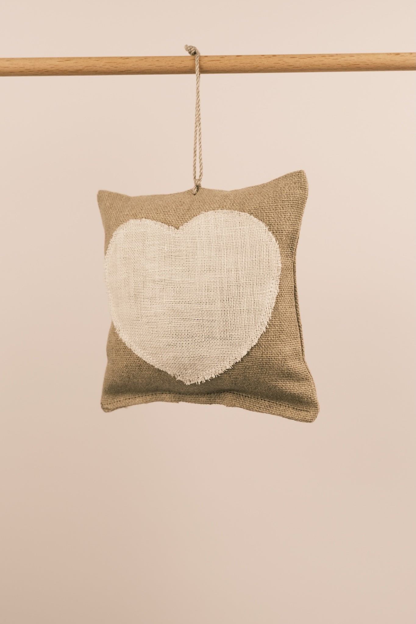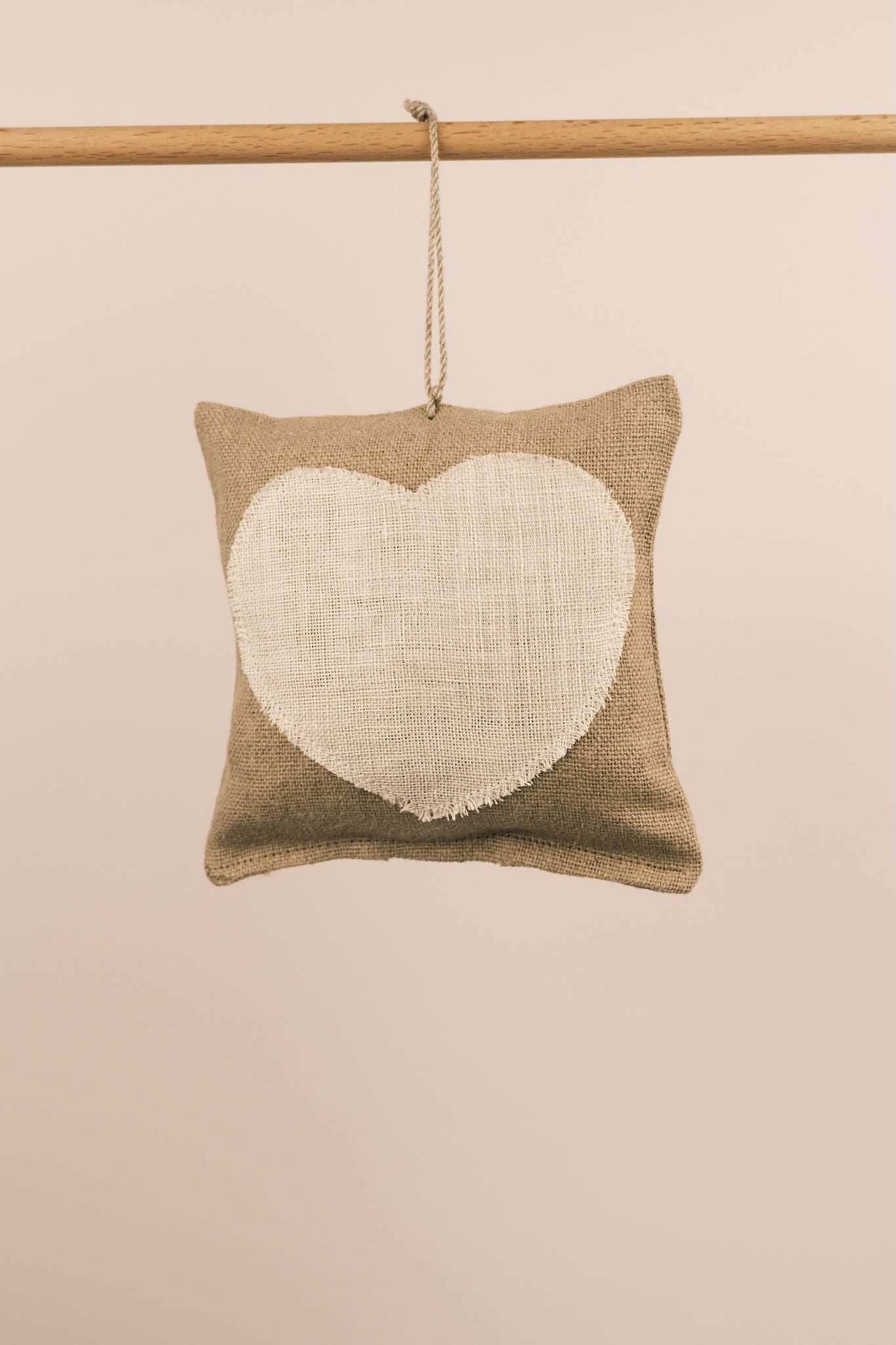 Cuscinetto realizzato in lino grezzo grigio di alta qualità, presenta una raffinata tasca a forma di cuore bianca. È imbottito con delicati fiocchi di legno di cirmolo dal profumo calmante. Il profumo di questo legno regola i battiti cardiaci in modo naturale e favorisce il sonno.