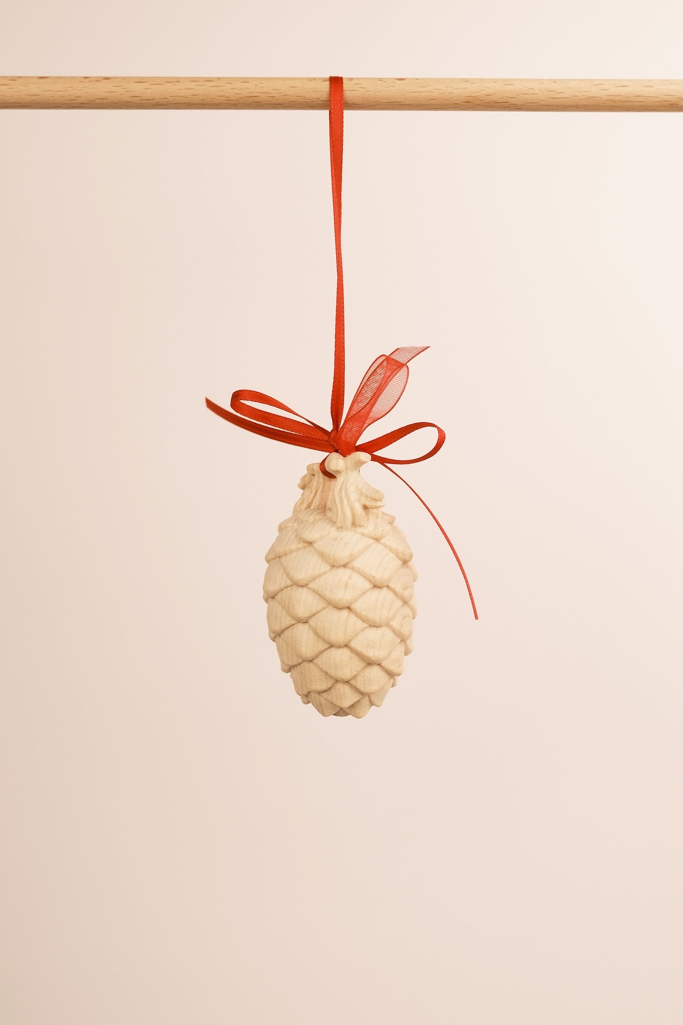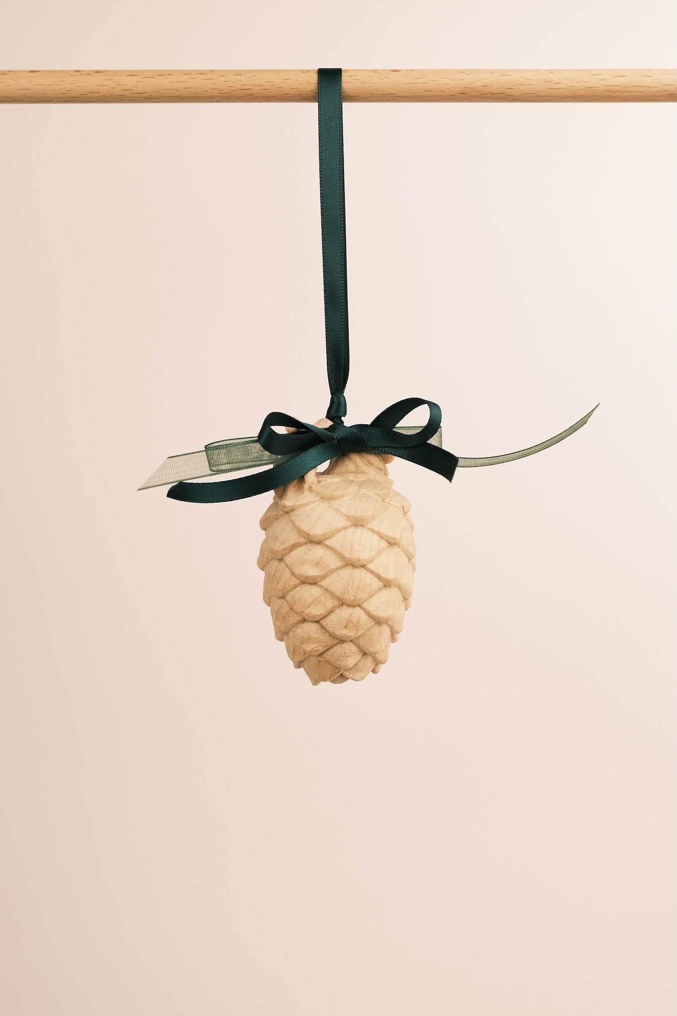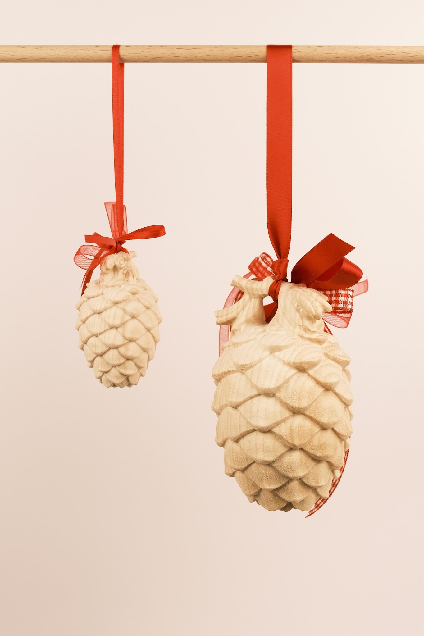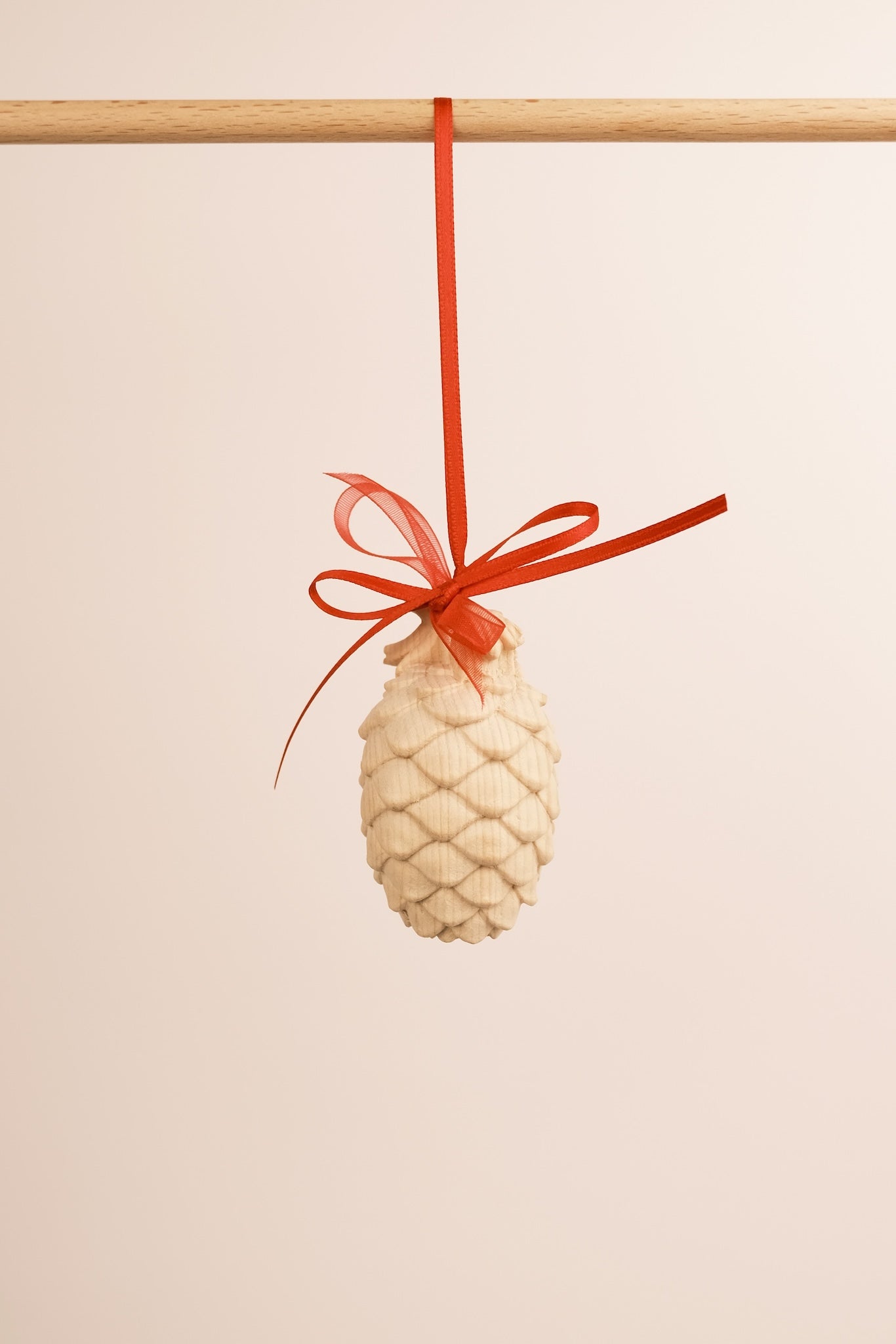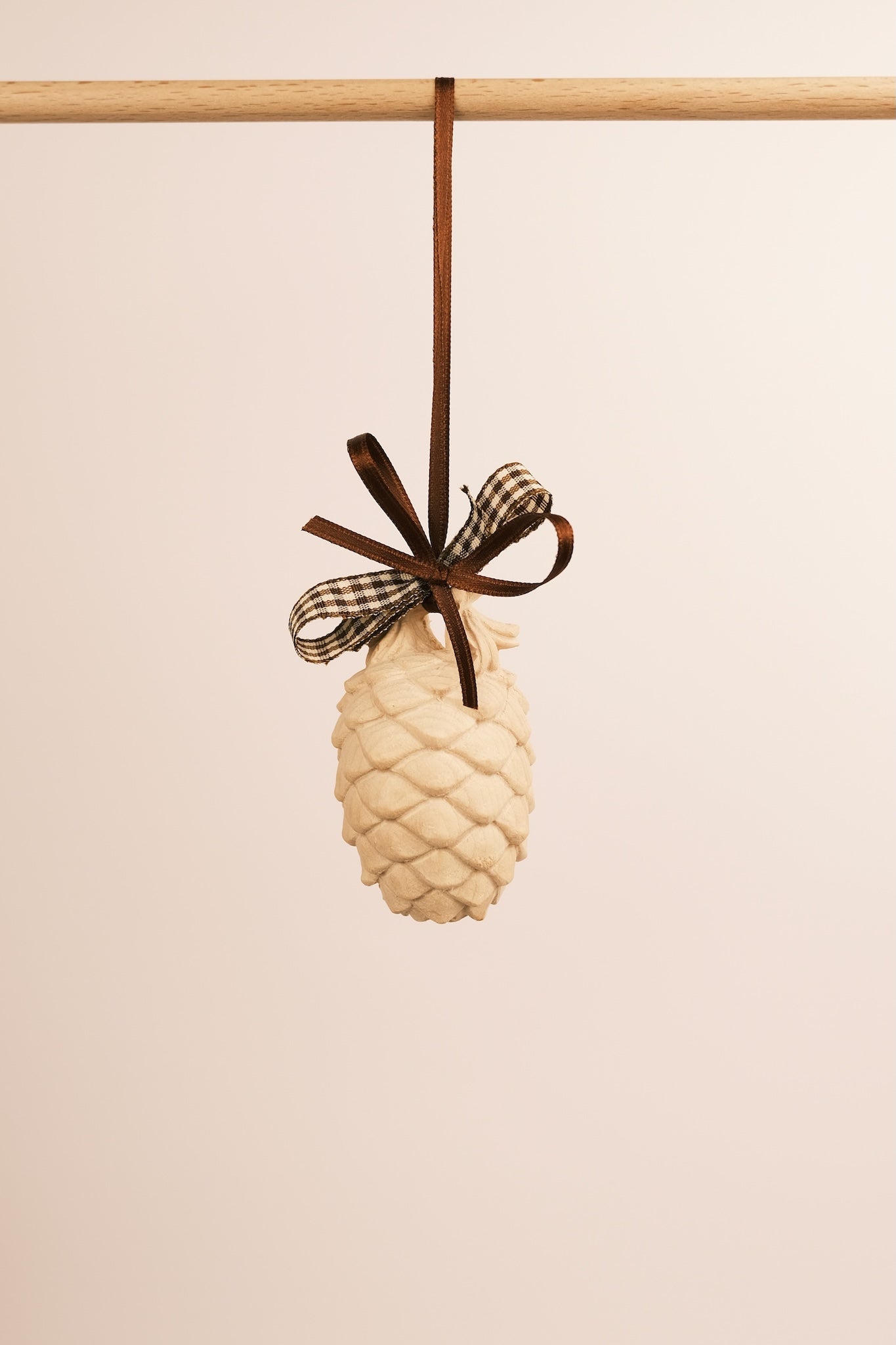 Pigna decorativa in legno da appendere, intagliata in cirmolo profumato.