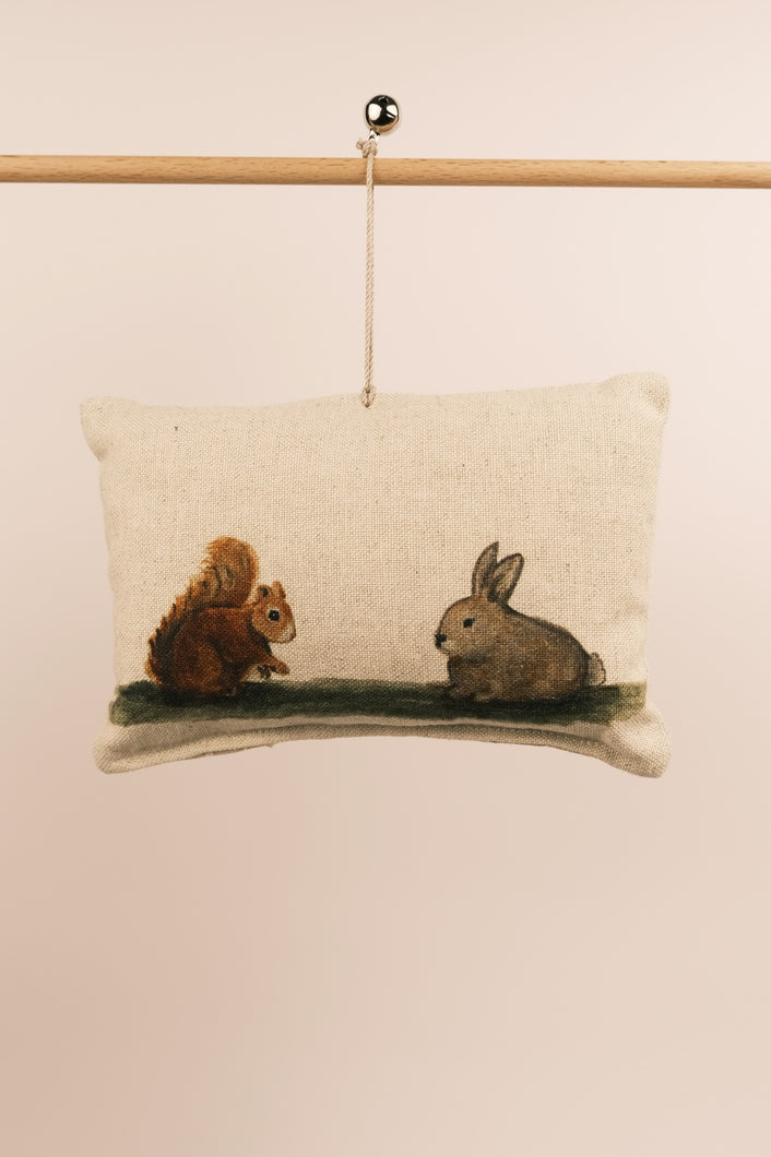 Scoiattolo e coniglietto - cuscinetto con fiocchi di legno di cirmolo